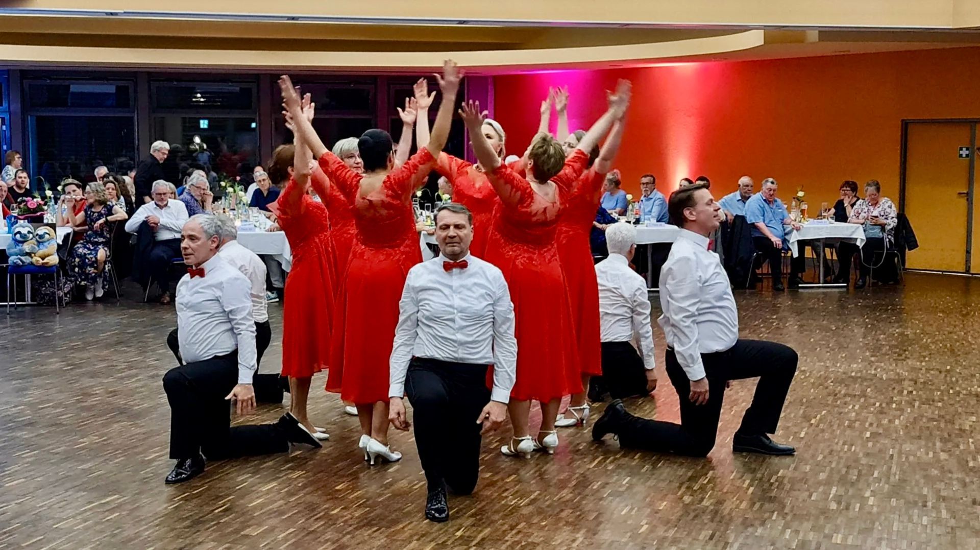 Da am Vortag einer der Tänzer erkrankte, ließ es sich der Tanzlehrer nicht nehmen, mit zwei Damen im Wechsel zu tanzen.